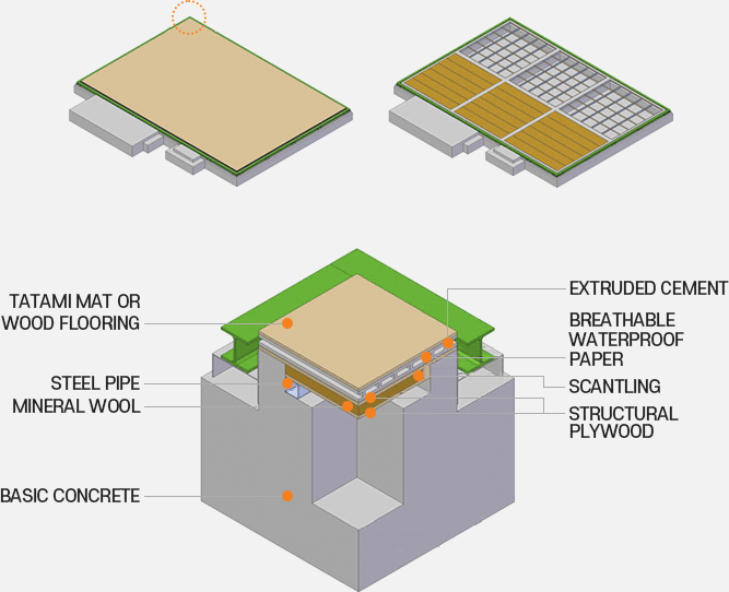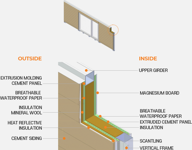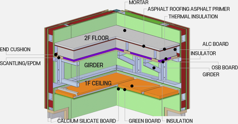 通过工厂面板加工,可实现干法。 可以缩短工期并确保统一的施工质量。 材料的标准化很容易。 扩建或改造时,气短。