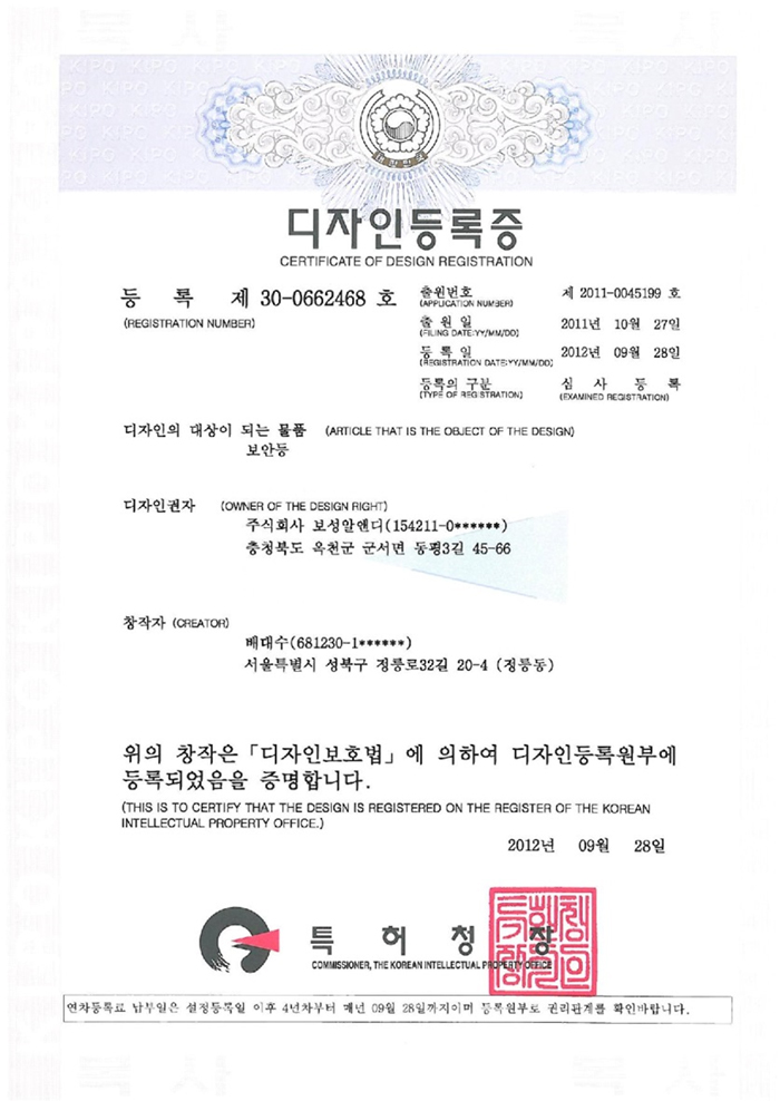 Design registration certificate