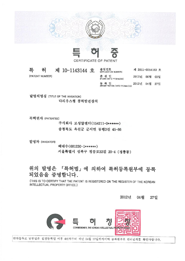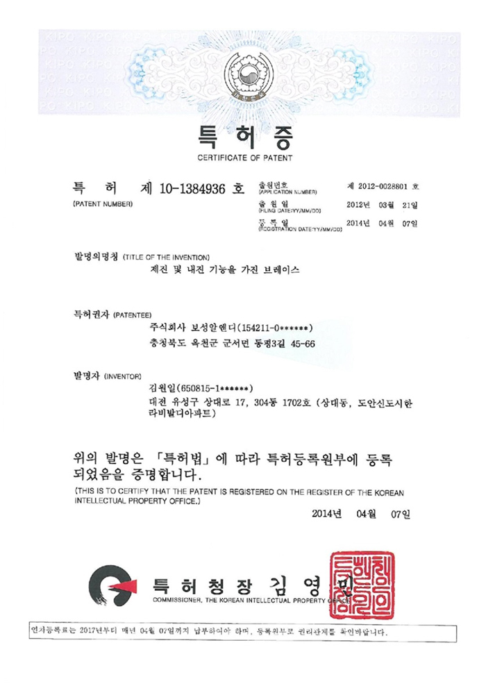 Patent certificate
