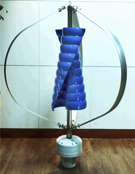 내부날개(Savonius) 및 외부날개(Darrieus)의 이중구조로 도심의 비규칙적 인 난류환경에서도 바람방향과 관계없이 미풍가동으로 발전 가능한 구조