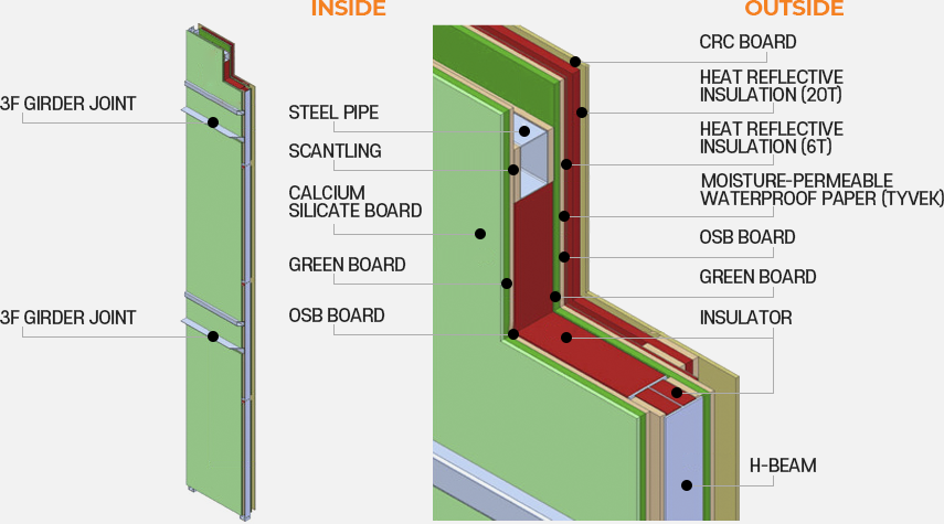 キューブハウスは panelizing 工法を適用した環境にやさしい住宅として画期的な 空気を短縮し、構造的な安全性と親環境性、居心地の良い空間を演出する 当社独自の住宅建築システムです。